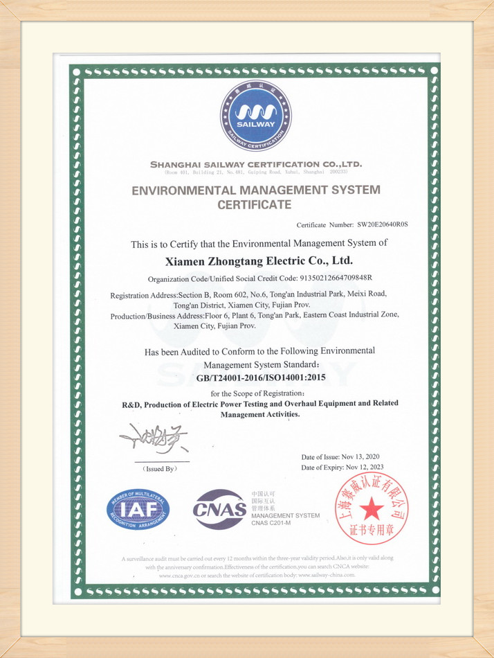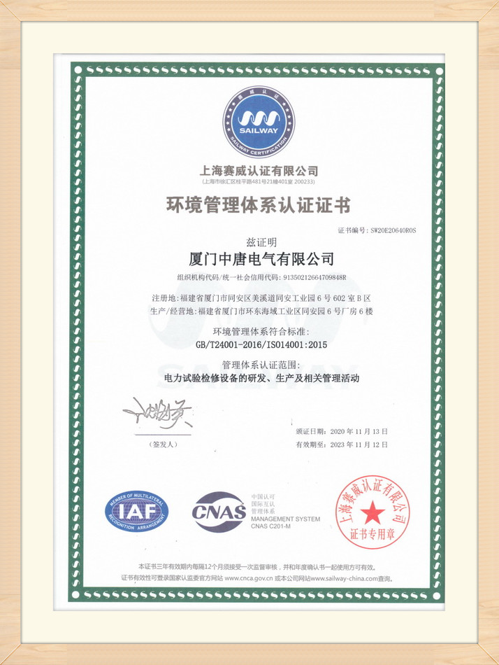 環(huán)境管理體系認(rèn)證證書