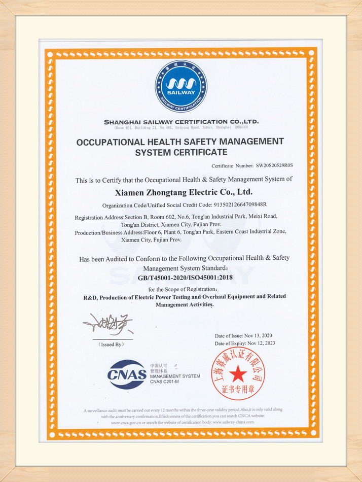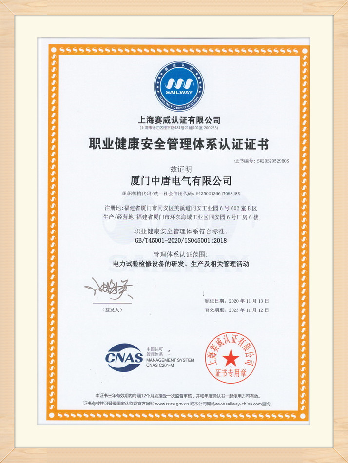 職業(yè)健康安全管理體系認(rèn)證證書