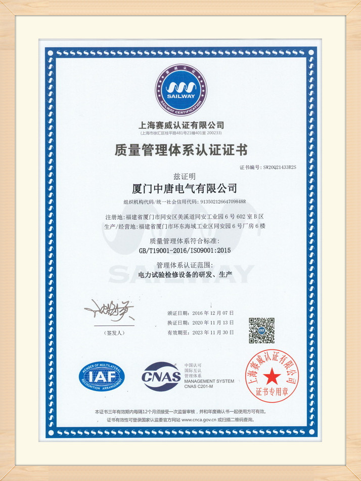 質(zhì)量管理體系認(rèn)證證書