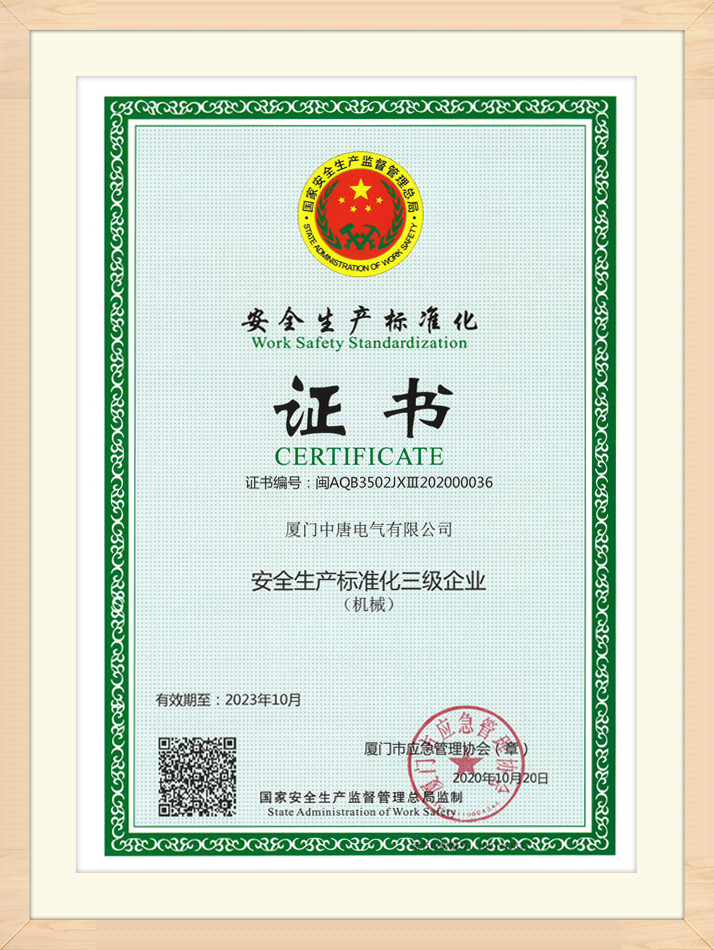 安全生產(chǎn)標(biāo)準(zhǔn)化證書